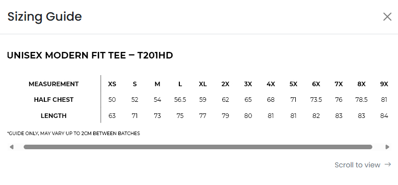 To view size guide click here